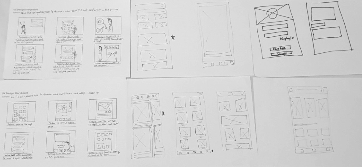 In the early stages of designing Artastic, I created hand-drawn wireframes and storyboards to map out the user flow and key features. This approach allowed me to quickly experiment with layouts and ideas, laying the foundation for the app’s user experience.